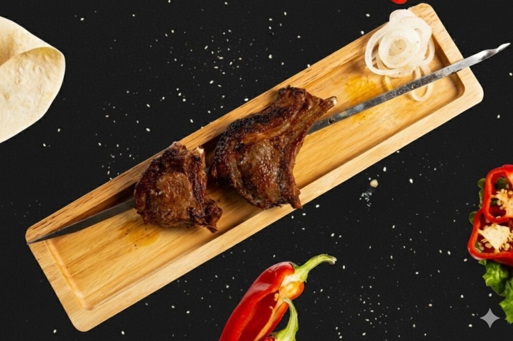 Шашлык антрекот — сочный стейк на кости, приготовленный на открытом огне. Мясо антрекота маринуется в пряных специях, чтобы подчеркнуть его насыщенный вкус и сохранить идеальную мягкость. Обжаренный на углях до румяной корочки, он остаётся нежным и сочным внутри. Подаётся горячим, с ароматом дымка, луком — всё для настоящего мясного удовольствия.
