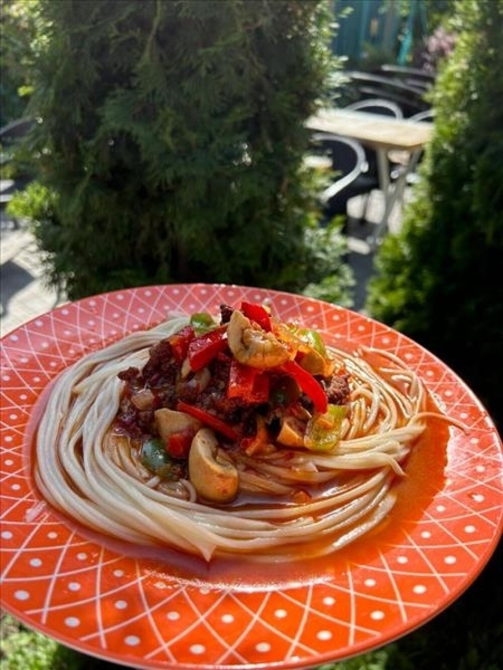 Могуру лагман — это сытное и ароматное блюдо, приготовленное на основе тянущейся лагманной лапши и сочной говядины. В насыщенном соусе обжариваются грибы шампиньоны, сладкий перец и пикантный полугорький перец, которые придают блюду яркий вкус и насыщенный аромат. Лук и чеснок делают вкус глубже и выразительнее, а свежая лапиза добавляет приятную текстуру. Всё это подаётся с традиционным тестом лагмана, создавая настоящий восточный вкус, который согревает и насыщает.