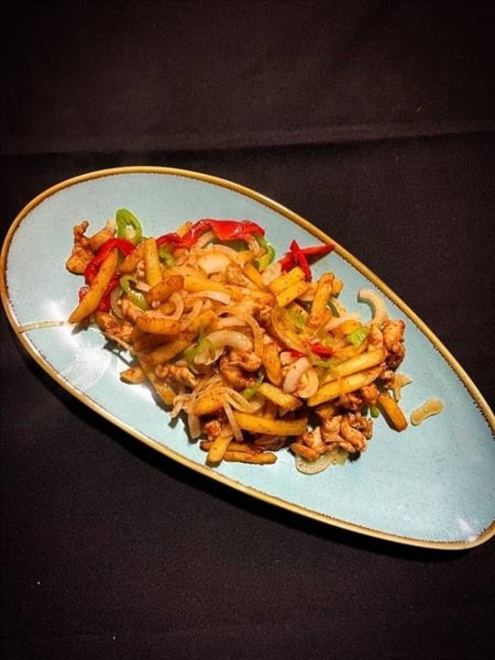 Фри с курицей — золотистый картофель фри и сочное куриное филе, приправленные молотой зирой, сладкой паприкой, перцем полугорким и соусом хаджо. Хрустящее, ароматное и очень сытное блюдо!
