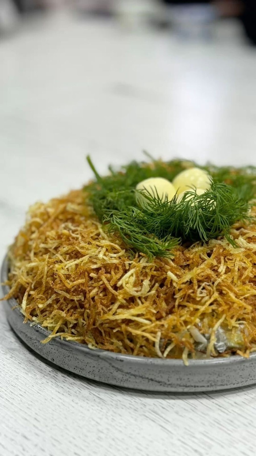 Гнездо Глухаря — запечённое куриное филе с картофелем, свежие и солёные огурцы, яйца, укроп и хрустящий пай, всё нежно соединено майонезом. Сытно, ароматно и очень аппетитно!