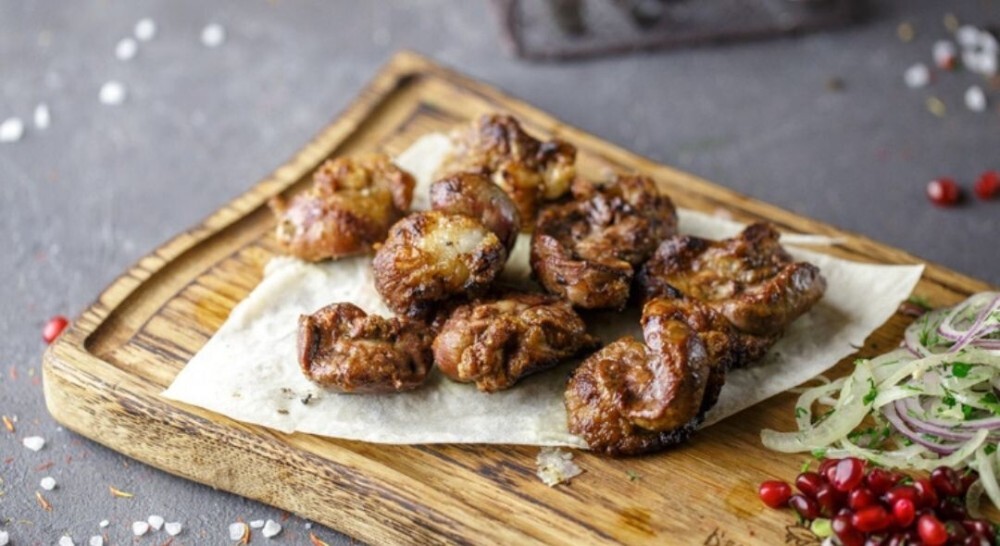 Шашлык из почек — нежные почки, тщательно вымоченные и замаринованные в ароматных специях для мягкого вкуса и приятного аромата. Обжаренные на углях до лёгкой румяной корочки, они сохраняют сочность и насыщенный мясной вкус.